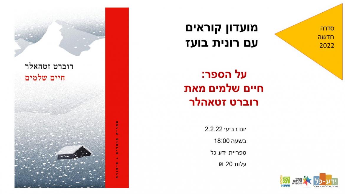 מועדון קוראים עם רונית בועז - חיים שלמים מאת רוברט זטאהלר