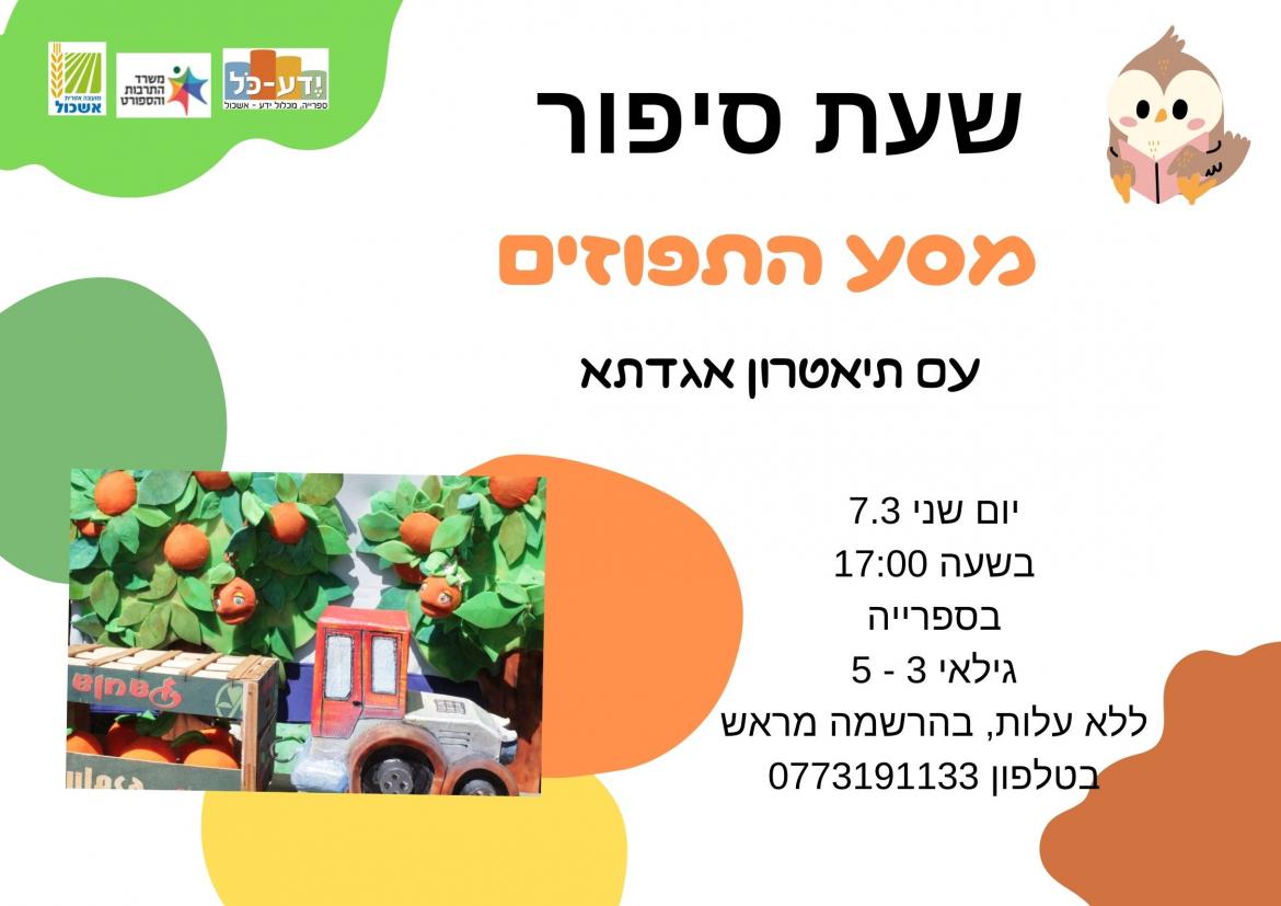 הוסף ללוח שנה 2022-03-07 00:00:00 2022-03-07 01:00:00 Asia/Jerusalem שעת סיפור - מסע התפוזים למידע מלא: https://eshkol.info/events/606/ ספריית ידע כל