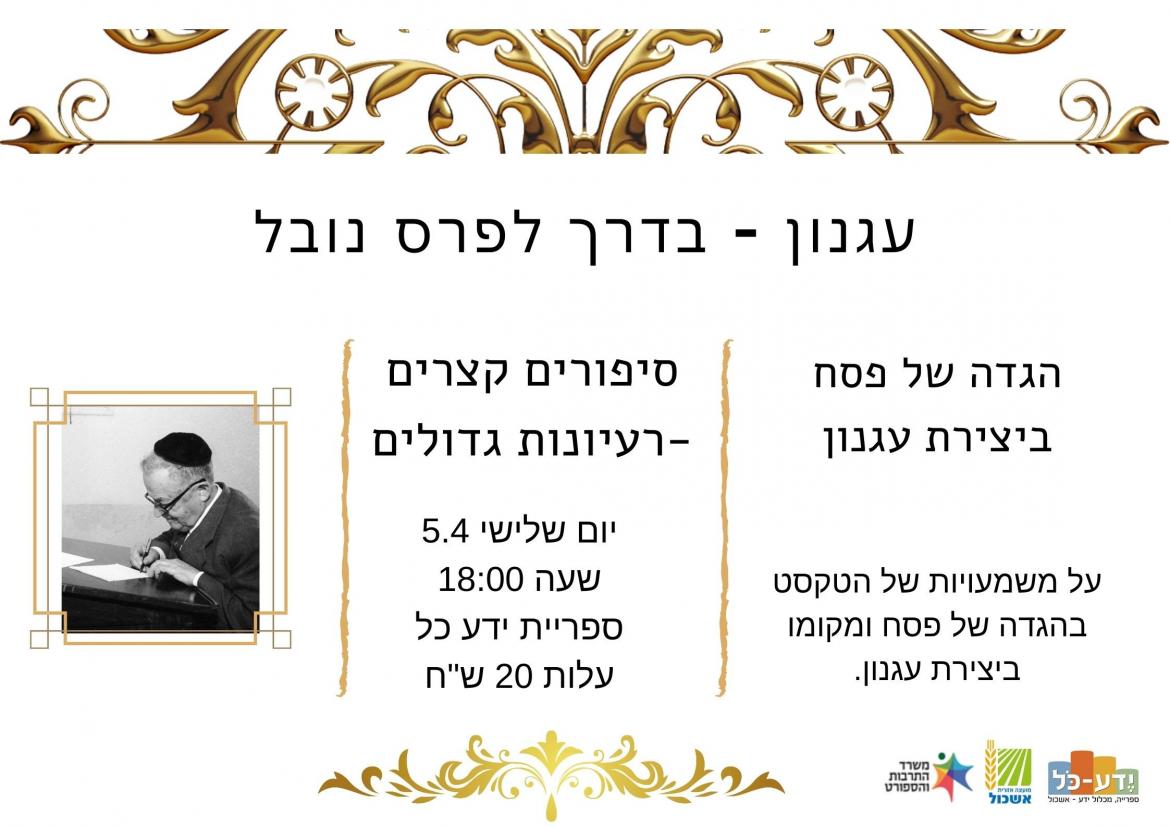 הוסף ללוח שנה 2022-04-05 00:00:00 2022-04-05 01:00:00 Asia/Jerusalem הגדה של פסח ביצירת עגנון למידע מלא: https://eshkol.info/events/618/ ספריית ידע כל