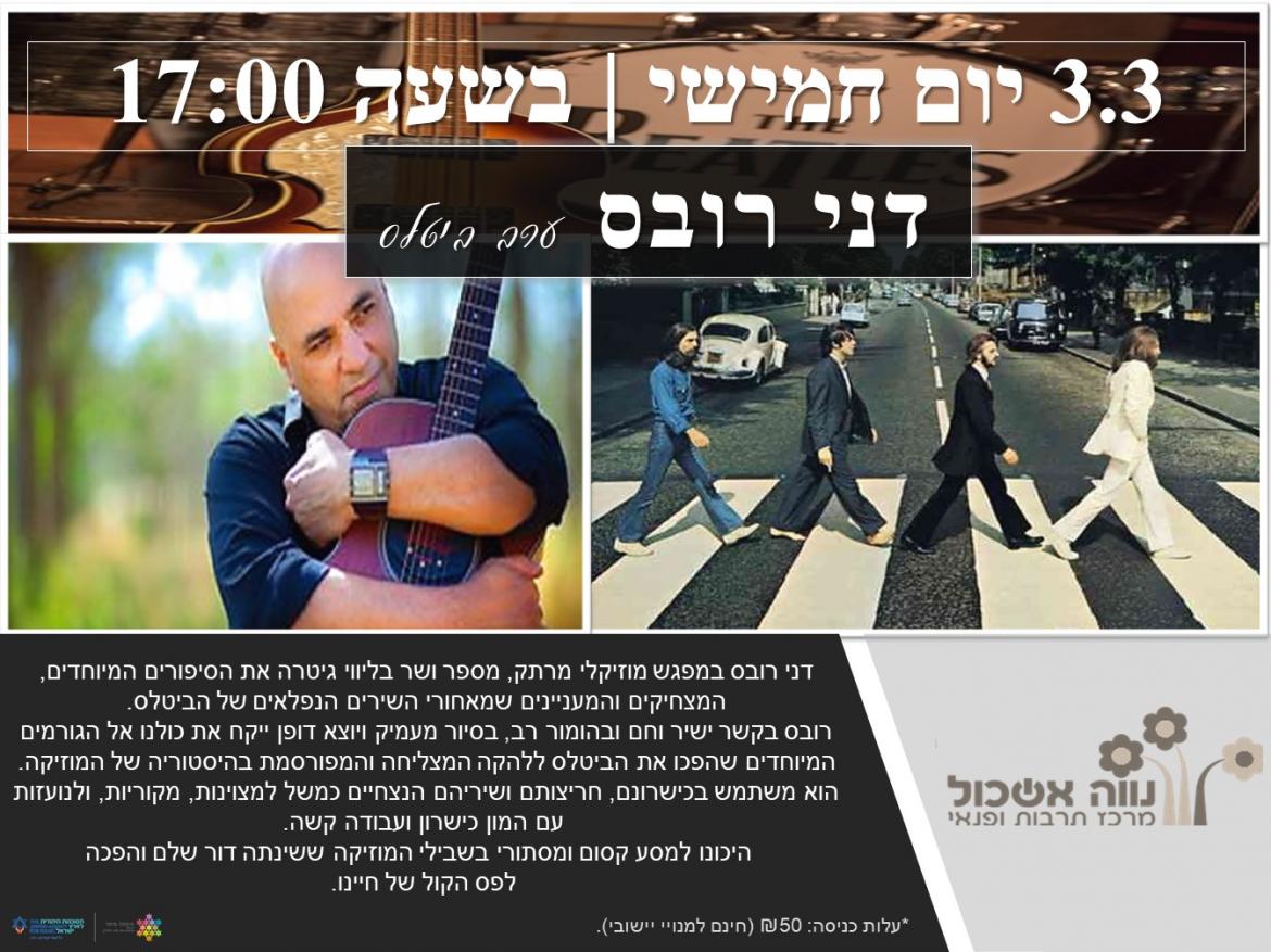 הוסף ללוח שנה 2022-03-03 00:00:00 2022-03-03 01:00:00 Asia/Jerusalem דני רובס - ערב ביטלס למידע מלא: https://eshkol.info/events/624/ נווה אשכול