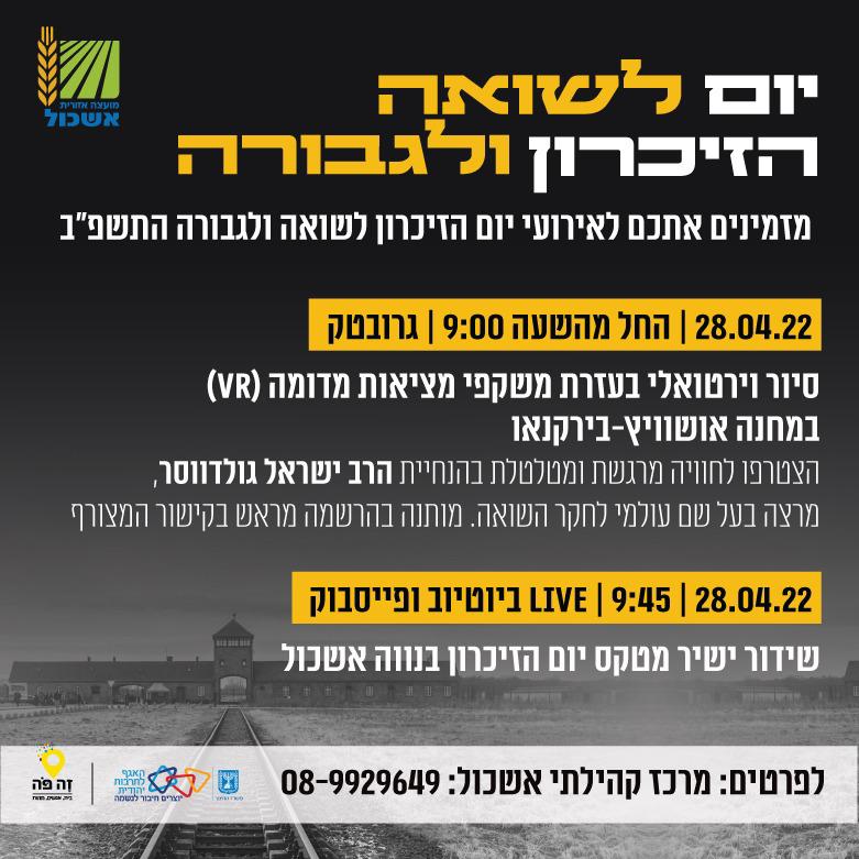 מזמינים אתכם לאירועי יום הזיכרון לשואה ולגבורה התשפ״ב