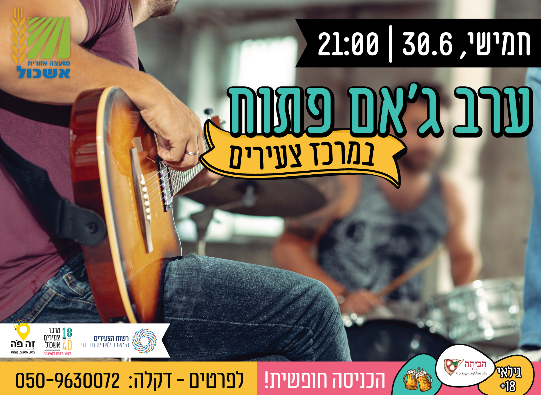 הוסף ללוח שנה 2022-06-30 00:00:00 2022-06-30 01:00:00 Asia/Jerusalem ליין מוזיקה - מופע פתיחה ערב ג'אם למידע מלא: https://eshkol.info/events/717/ מרכז צעירים אשכול