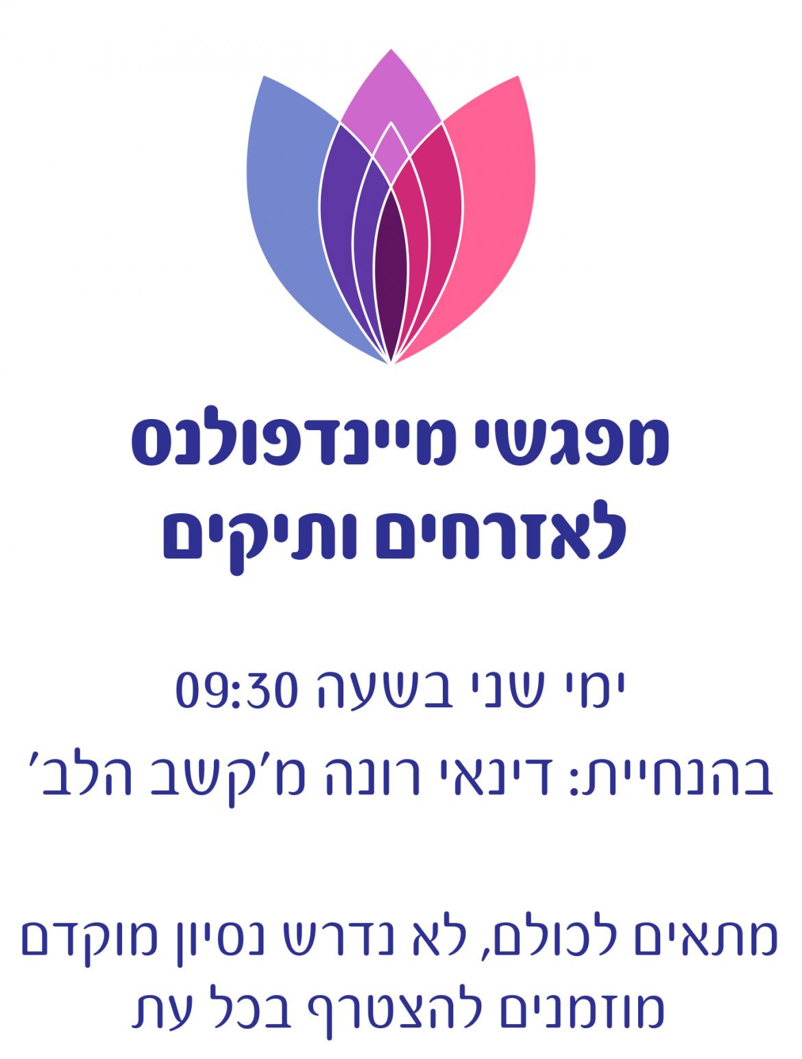 הוסף ללוח שנה 2020-10-05 00:00:00 2020-10-05 01:00:00 Asia/Jerusalem מיינדפולנס לאזרחים ותיקים למידע מלא: https://eshkol.info/events/72/ ZOOM
