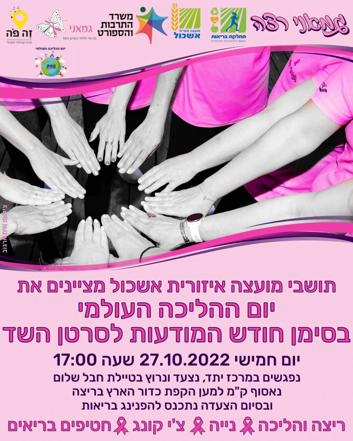 תושבי מועצה אזורית אשכול מציינים את יום ההליכה העולמי, בסימן חודש המודעות לסרטן השד