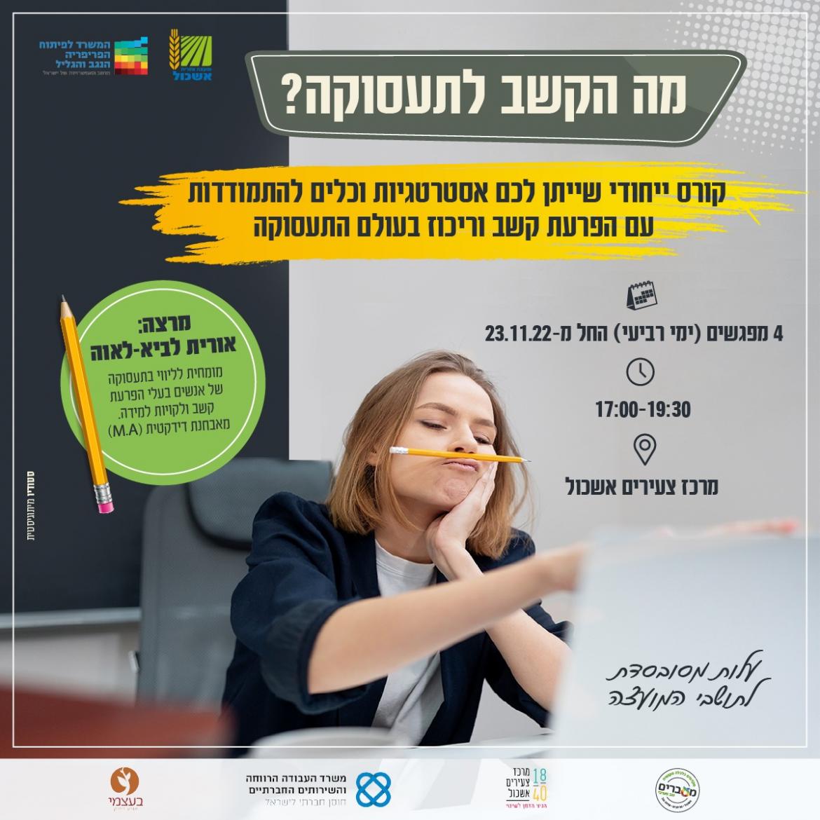 הוסף ללוח שנה 2022-11-23 00:00:00 2022-11-23 01:00:00 Asia/Jerusalem מה הקשב לתעסוקה למידע מלא: https://eshkol.info/events/840/ מרכז צעירים אשכול