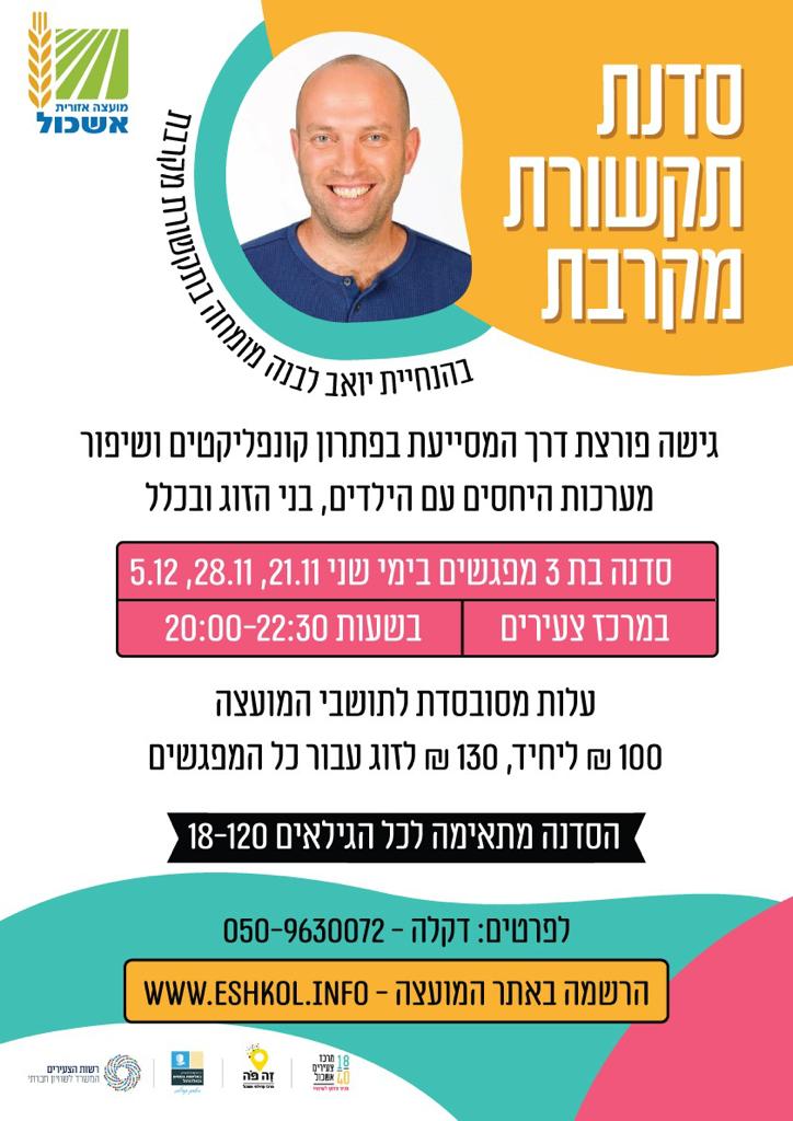 סדנה בת 3 מפגשים בתאריכים: 21.11, 28.11, 7.12 ימי שני בשעה 20:00-22:30 במרכז צעירים