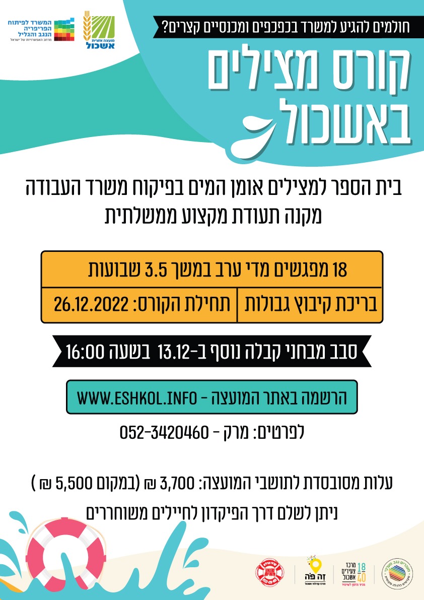 קורס מצילים באשכול - "אומן המים"