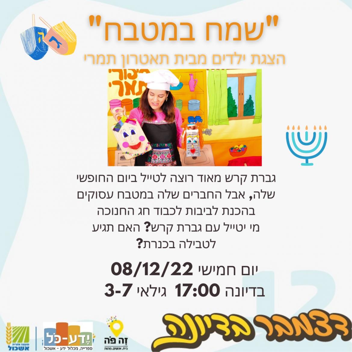 הוסף ללוח שנה 2022-12-08 00:00:00 2022-12-08 01:00:00 Asia/Jerusalem הצגת ילדים - שמח במטבח למידע מלא: https://eshkol.info/events/889/ דיונה