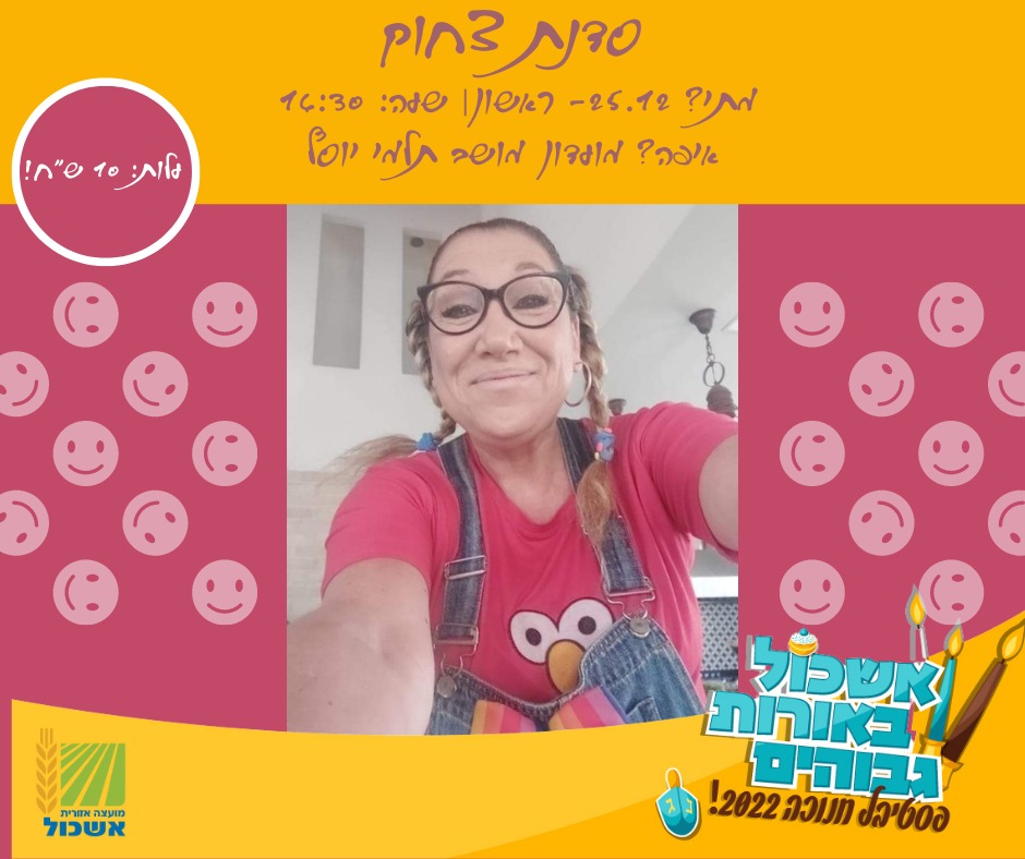ענת תורג'מן מתלמי יוסף מזמינה אתכם לסדנה קלילה שבה נרקוד, נשחק ונחווה זמן איכות משפחתי של שמחה וצחוק בלתי פוסק.