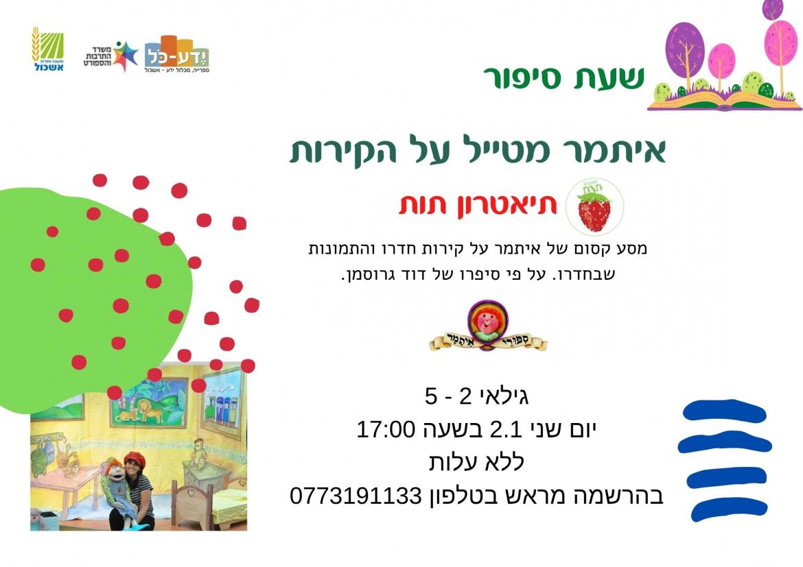 הוסף ללוח שנה 2023-01-02 00:00:00 2023-01-02 01:00:00 Asia/Jerusalem שעת סיפור - איתמר מטייל על הקירות למידע מלא: https://eshkol.info/events/926/ ספריית ידע כל