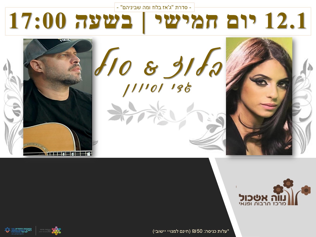 הוסף ללוח שנה 2023-01-12 00:00:00 2023-01-12 01:00:00 Asia/Jerusalem בלוז & סול - גדי וסיוון למידע מלא: https://eshkol.info/events/933/ נווה אשכול