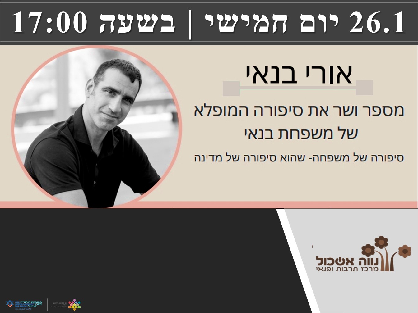 הוסף ללוח שנה 2023-01-26 00:00:00 2023-01-26 01:00:00 Asia/Jerusalem אורי בנאי - סיפורה של משפחה - שהוא סיפורה של מדינה למידע מלא: https://eshkol.info/events/946/ נווה אשכול