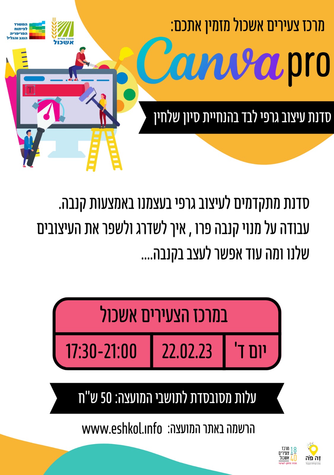מרכז צעירים אשכול מזמין אתכם לסדנת קנבה למתקדמים!!