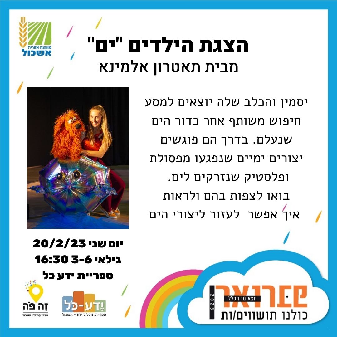 לפרטים נוספים והסדר נגישות מיוחד: מרכז קהילתי אשכול 08-9929649