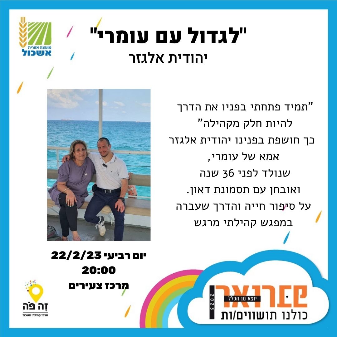 יום רביעי, 22.02.23 בשעה 20:00 במרכז צעירים אשכול