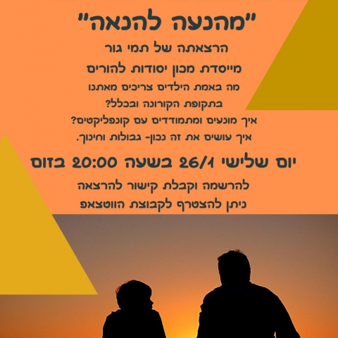 26 ינוארהרצאה "מהנעה להנאה"ZOOM -