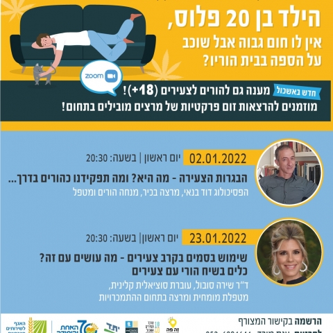 23 ינוארשימוש בסמים בקרב צעירים - מה עושים עם זה? כלים בשיח הורי עם צעיריםZOOM -