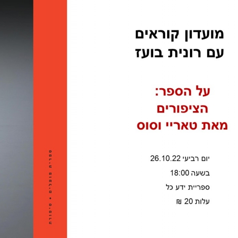 26 אוקטוברמועדון קוראים עם רונית בועז - "הציפורים"ספריית ידע כל -