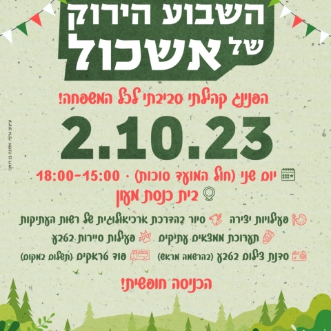 02 אוקטוברהשבוע הירוק של אשכול - הפנינג קהילתי סביבתי לכל המשפחהבית כנסת מעון -
