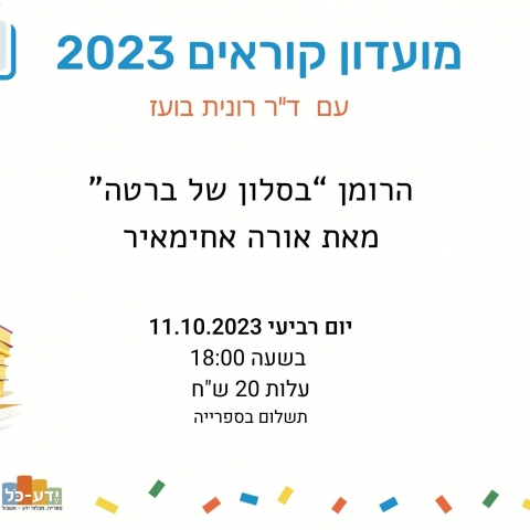 11 אוקטוברמועדון קוראים - "בסלון של ברטה"ספריית ידע כל -