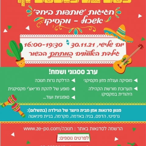 14 נובמברמחנוכייה למנורה - שרשרת חג החנוכה לסיפור הציונותנווה אשכול -