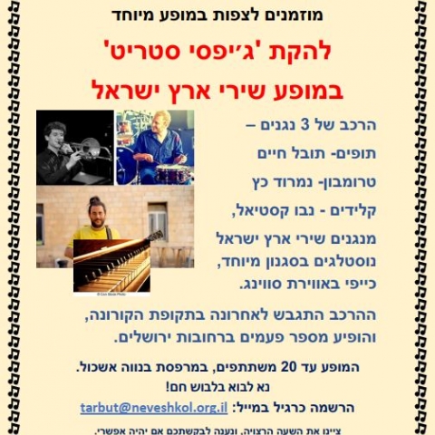 10 דצמברלהקת 'ג׳יפסי סטריט' במופע שירי ארץ ישראלנווה אשכול -