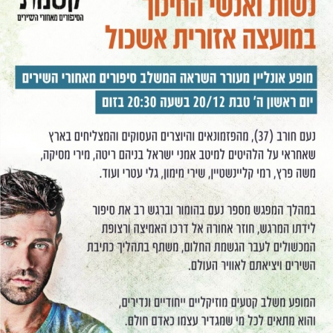 20 דצמבראירוע הוקרה לאנשי החינוך באשכול - סיפורים מאחורי השירים עם נועם חורבזום -
