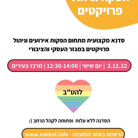 02 דצמברסדנת תעסוקה לניהול והפקת פרויקטיםמרכז צעירים אשכול -
