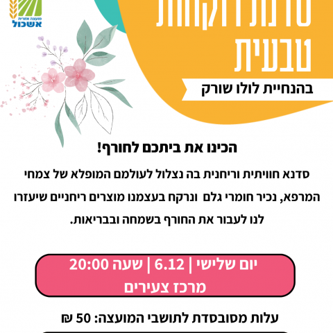 06 דצמברסדנת רוקחות טבעית- בהנחיית לולו שורקמרכז צעירים אשכול -
