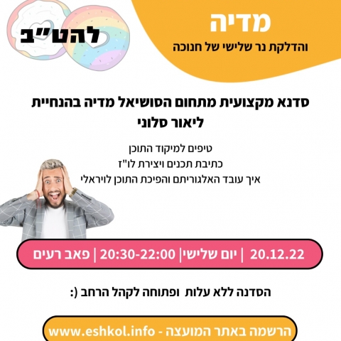 20 דצמברסדנת תעסוקה - ניהול סושיאל מדיה עם כוכב הרשת ליאור סלוניפאב בקיבוץ רעים -