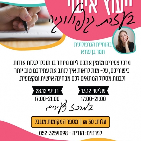 28 דצמברייעוץ אישי בעזרת גרפולוגיהמרכז צעירים אשכול -