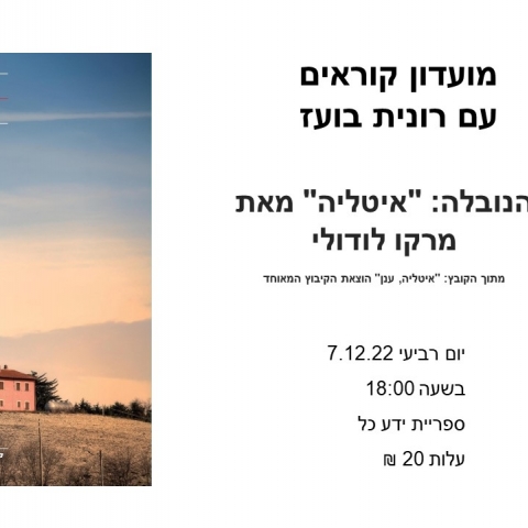 07 דצמברמועדון קוראים עם ד"ר רונית בועז - ענןספריית ידע כל -