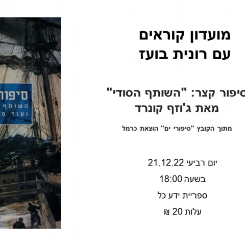 21 דצמברמועדון קוראים עם ד"ר רונית בועז - השותף הסודיספריית ידע כל -