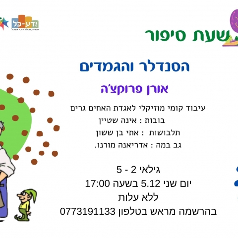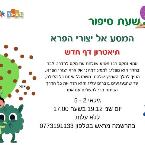 26 דצמברשעת סיפור וסדנא מתוקהלובי אולם תרבות אשכול -