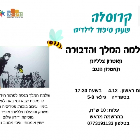 04 דצמברקרוסלה שעת סיפור לילדים - שלמה המלך והדבורהספריית ידע כל -