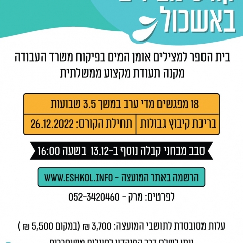 13 דצמברקורס מצילים באשכול - "אומן המים"גבולות -