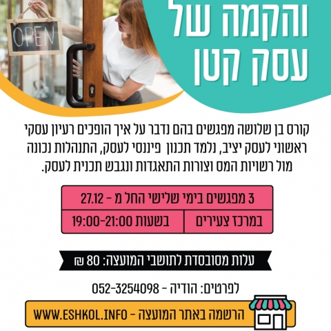 27 דצמברקורס תכנון והקמה של עסק קטןמרכז צעירים -