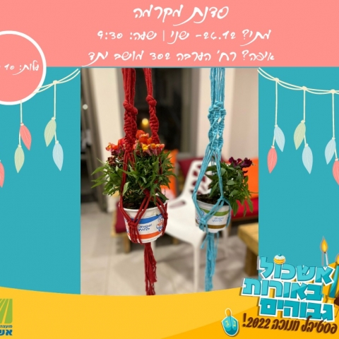 26 דצמברמקרמה - סדנת מתלה לעציץ כולל עציץרח' הערבה 302 מושב יתד -