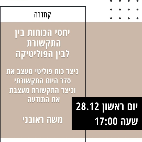 28 דצמבריחסי הכוחות בין התקשורת לבין הפוליטיקהנווה אשכול -