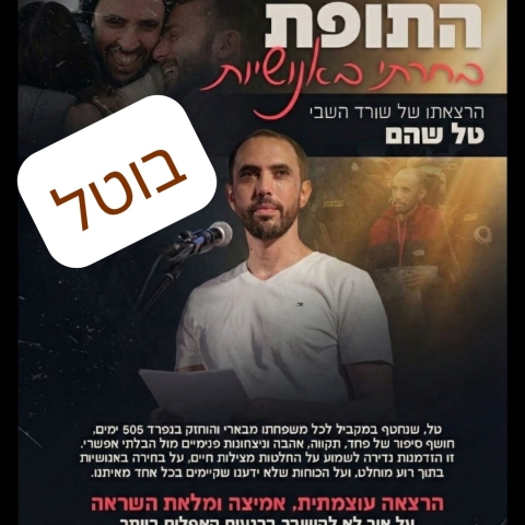 30 דצמברבתוך התופת בחרתי באנושיות - הרצאה של שורד השבי טל שהםנווה אשכול -