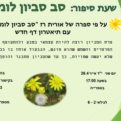 26 אפרילשעת סיפור: סב סביון לומד לעוףספריית ידע כל -