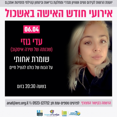 06 אפרילהרצאתה של עדי גוזי (שכנתה של שירה איסקוב) - שומרת אחותיZOOM -