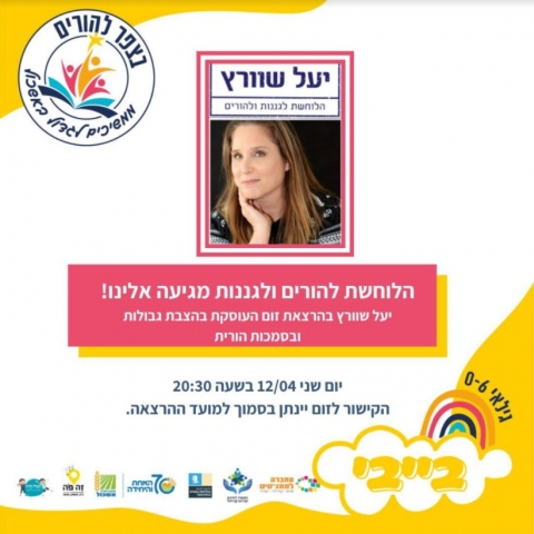 12 אפרילהרצאתה של יעל שוורץ על הצבת גבולות וסמכות הוריתZOOM -