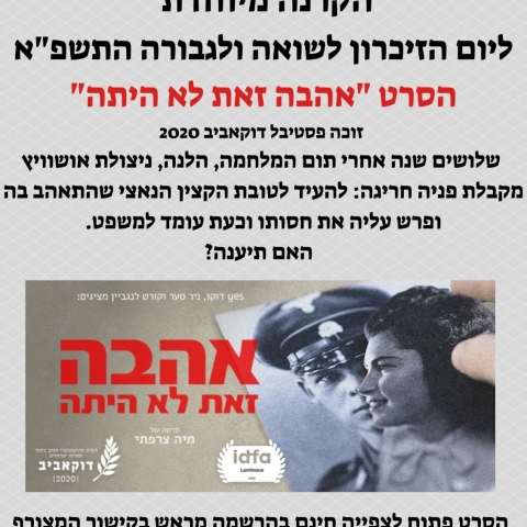 07 אפרילהקרנת הסרט "אהבה זאת לא היתה"און - ליין -