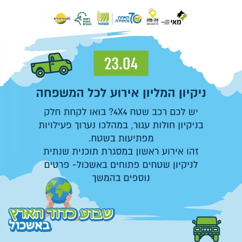 22 אפרילשבוע כדור הארץ באשכול - יום הניקיוןחניון רעים ביער בארי -