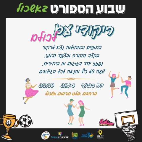 28 אפרילשבוע הספורט באשכול- ריקודי עםברחבת אולם תרבות אשכול -