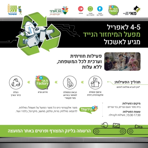 04 אפרילמפעל המחזור הנייד מגיע לאשכול!בית הספר "נועם נצרים", בני נצרים -
