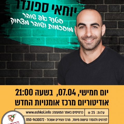 07 אפריליוחאי ספונדר – סטנדאפ שובר מוסכמות ושובר מצחוקאודיטוריום מרכז אומנויות החדש -