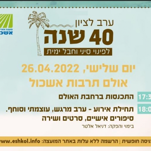 26 אפרילערב לציון 40 שנה לפינוי סיני וחבל ימיתאולם תרבות אשכול -
