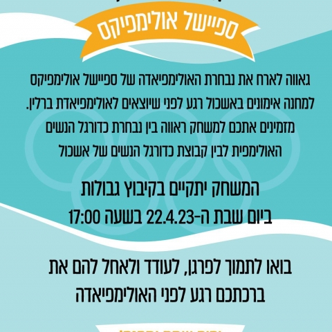 22 אפרילמשחק ראווה - נבחרת ספיישל אולימפיקסמגרש הכדורגל בקיבוץ גבולות -